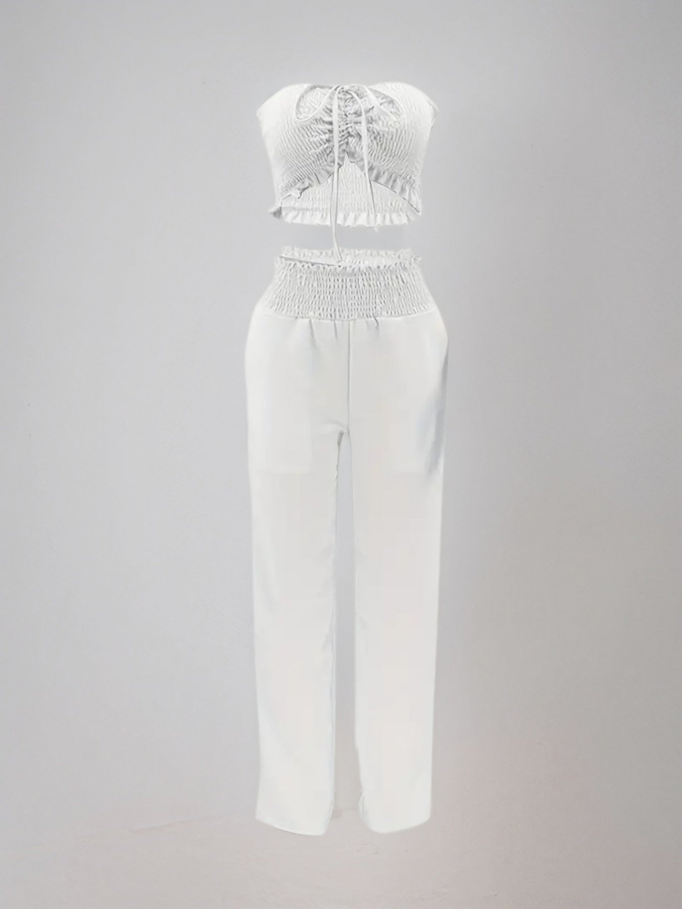 New Autumn Style Women's Two-piece Set, Featuring A Stylish Bow Design And Strapless Cover, Paired With A Stylish Pink Polyester Twopiece Set - S
