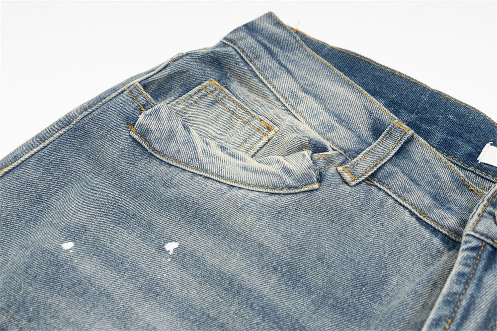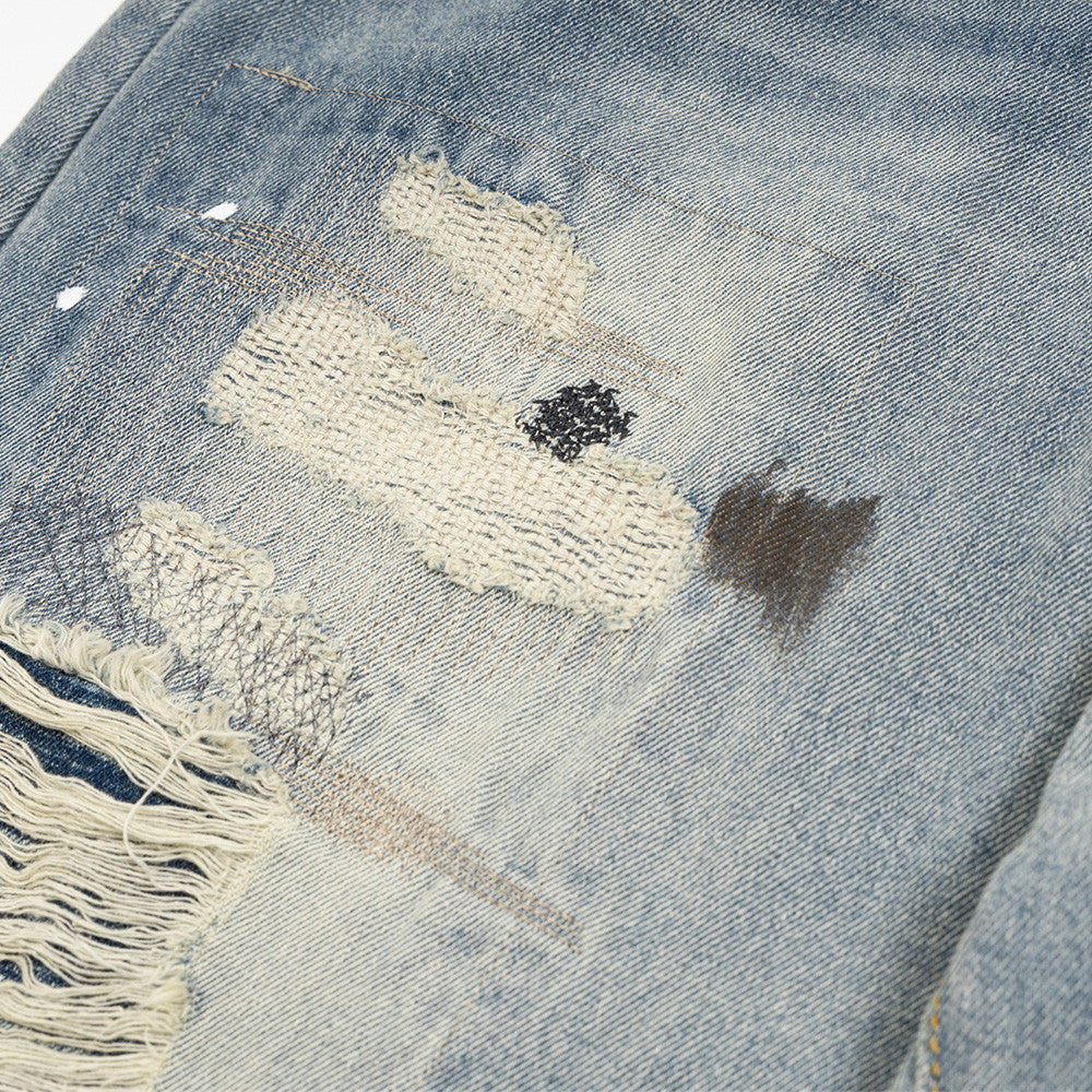 Punk Street Fashion Paint Splash Loose Distressed Beggar Straight-leg Trousers Men And Women - Blue / S